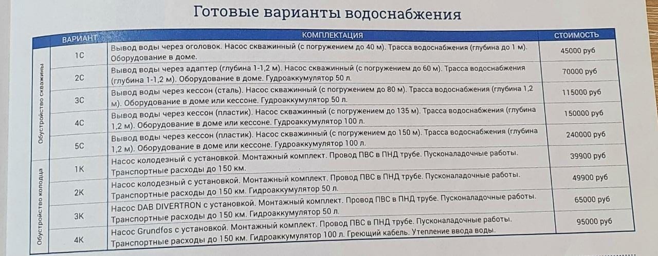 — Компания по обустройству скважин и колодцев. Проводят водопровод от скважины или колодца в дом под ключ.