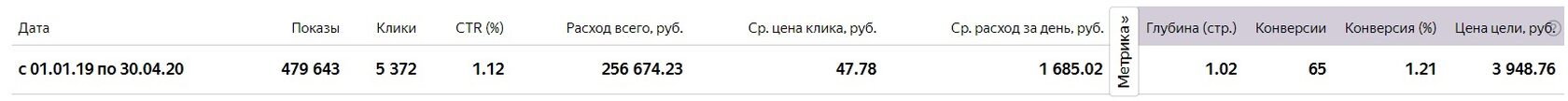 Старые рекламные кампании с ценой лида почти 4000 руб.