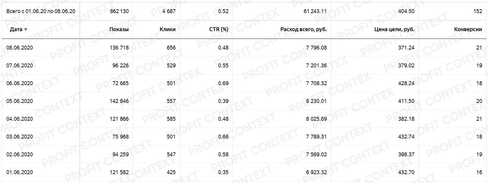 Во время и сразу после окончания самоизоляции многие конкуренты не рекламировались в Директе. Аукцион был значительно «охлажден». Мы вошли в него на хороших объемах и выкупили весь трафик за бесценок, пока другие сидели и боялись заходить в Директ, а то вдруг не окупится.
