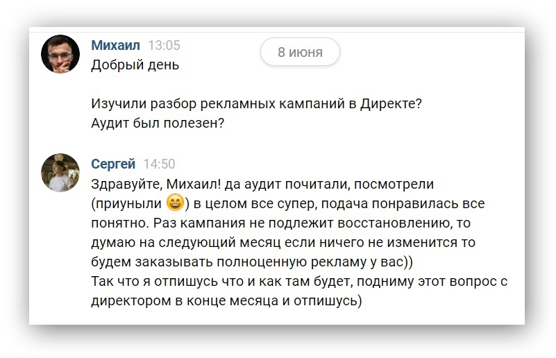 Клиент обратился за проведением аудита рекламных кампаний в Яндекс.Директ.