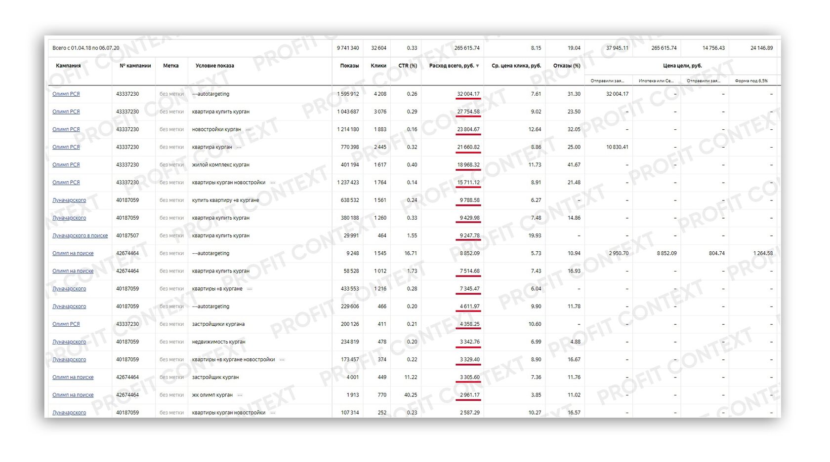 Целый пул ключевых запросов расходовал по 20 — 30 тыс. руб. без единой заявки и бодро сливал рекламный бюджет.