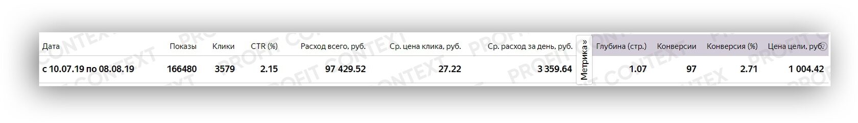 *Я не раскрываю всех тонкостей своей работы, т.к. кейс пишется не для коллег директологов, а для потенциальных клиентов.