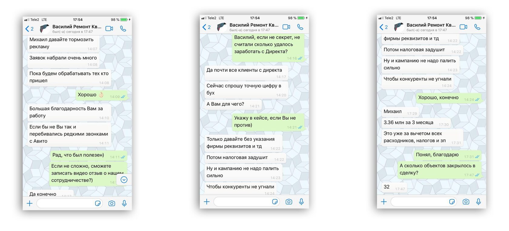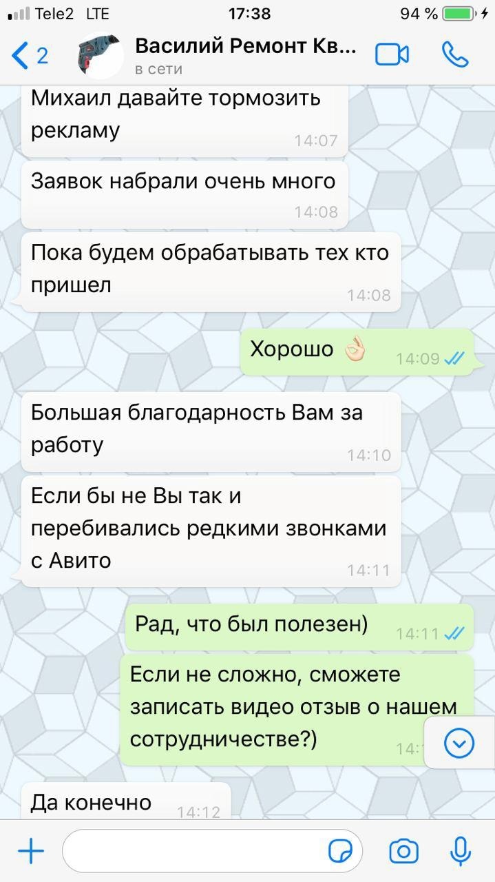 В первый же месяц мы привели клиенту 92 заявки на ремонт квартир по 1437 руб.
