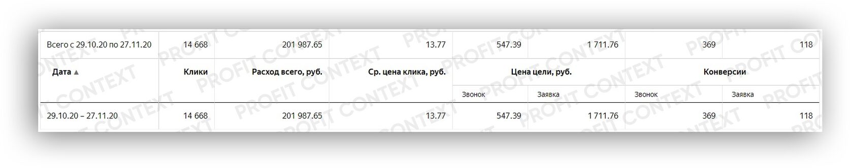 — Для теста создали отдельно рекламные кампании с радиусом показа объявлений 1.5 км (на близлежащие дома) и отдельно на весь остальной город на низких ставках